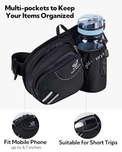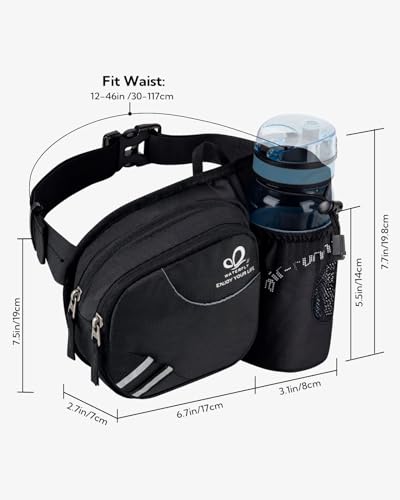 WATERFLY Gürteltasche Bauchtasche mit Flaschenhalter Damen und Herren, Atmungsaktiv Sport Hüfttasche für Laufen Radfahren Camping Klettern Reisen Wandern Joggen Hundetraining