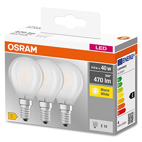 Osram LED Base Classic P, in Tropfenform mit E14-Sockel, Nicht Dimmbar, Ersetzt 40 Watt, Matt, Warmweiß - 2700 Kelvin, 3er-Pack