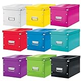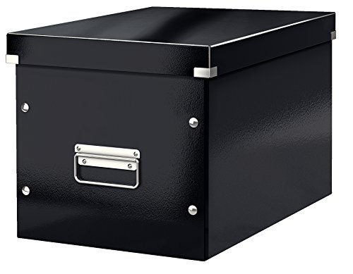 Leitz Click & Store Aufbewahrungsbox mit Deckel Groß, Würfelbox passend für Kallax Regale in Wohnzimmer oder Büro, Box aus 80 % recycelter Premium-Hartpappe, Stabile Metallgriffe, Blau, 61080036