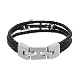 s.Oliver Armband für Herren Anker, Leder / Edelstahl, IP Schwarz, Länge: 20-21,5 cm