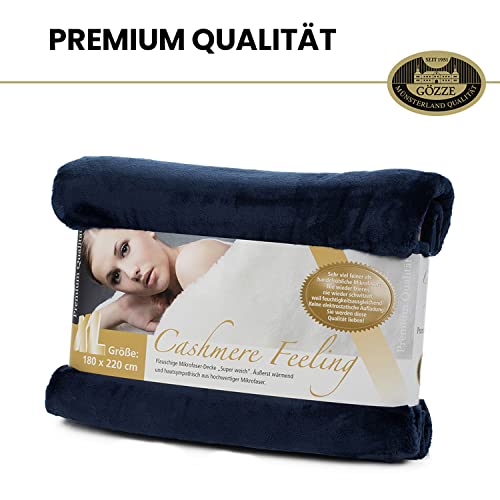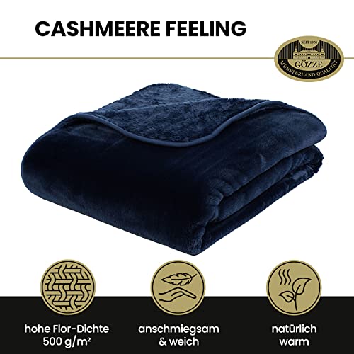Gözze - Premium Cashmere-Feeling Wohn- und Kuscheldecke, 500 g/m², 180 x 220 cm - Marine