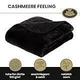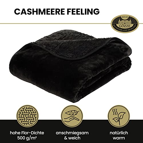 Gözze - Premium Cashmere-Feeling Wohn- und Kuscheldecke, 500 g/m², 130 x 170 cm - Schwarz
