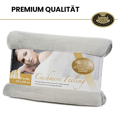 Gözze - Premium Cashmere-Feeling Wohn- und Kuscheldecke, 500 g/m², 220 x 240 cm - Silber