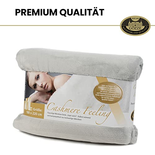 Gözze - Premium Cashmere-Feeling Wohn- und Kuscheldecke, 500 g/m², 180 x 220 cm - Silber
