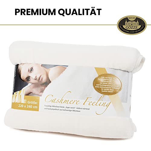 Gözze - Premium Cashmere-Feeling Wohn- und Kuscheldecke, 500 g/m², 220 x 240 cm - Wollweiß