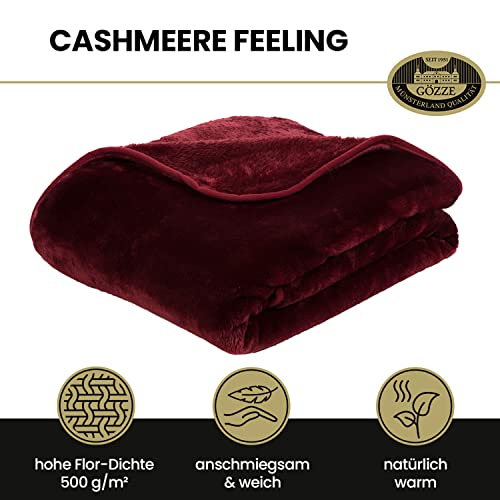 Gözze - Premium Cashmere-Feeling Wohn- und Kuscheldecke, 500 g/m², 130 x 170 cm - Bordeaux