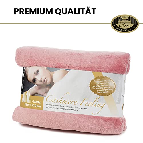 Gözze - Premium Cashmere-Feeling Wohn- und Kuscheldecke, 500 g/m², 180 x 220 cm - Altrosa