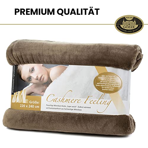 Gözze - Premium Cashmere-Feeling Wohn- und Kuscheldecke, 500 g/m², 220 x 240 cm - Taupe