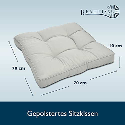 Beautissu Lounge Kissen Outdoor 70x70 cm Hellgrau – Bequemes Sitzkissen Gartenstuhl 10 cm dick Sitzpolster Auflagen für Rattanmöbel Gartenmöbel Polster für Stühle Sessel Stuhlauflage Indoor – xLuna
