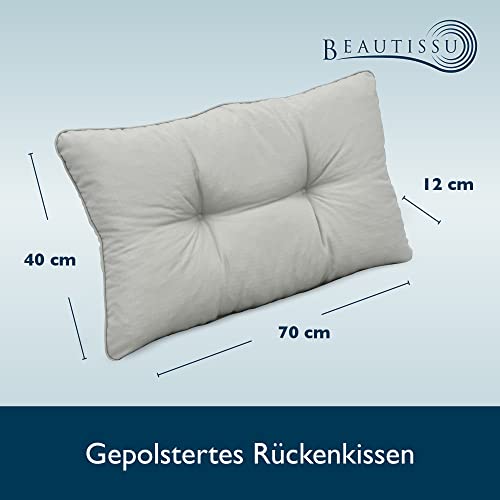 Beautissu Lounge Kissen Outdoor 70x40 cm Hellgrau – Bequemes Rückenkissen Gartenstuhl 12 cm dick Sitzpolster Auflagen für Rattanmöbel Gartenmöbel Polster für Stühle Sessel Stuhlauflage Indoor – xLuna