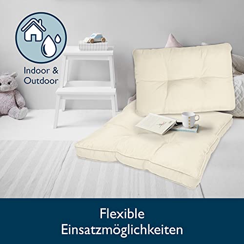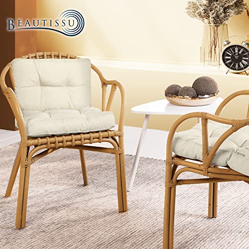Beautissu Lounge Kissen Outdoor 50x40 cm Natur – Bequemes Rückenkissen Gartenstuhl 12 cm dick Sitzpolster Auflagen für Rattanmöbel Gartenmöbel Polster für Stühle Sessel Stuhlauflage Indoor – xLuna