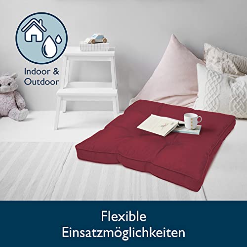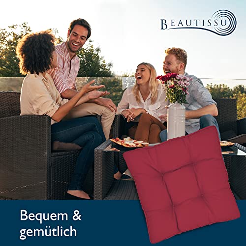 Beautissu Lounge Kissen Outdoor 60x60 cm Rot – Bequemes Sitzkissen Gartenstuhl 10 cm dick Sitzpolster Auflagen für Rattanmöbel Gartenmöbel Polster für Stühle Sessel Stuhlauflage Indoor – xLuna