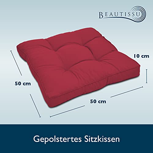 Beautissu Lounge Kissen Outdoor 50x50 cm Rot – Bequemes Sitzkissen Gartenstuhl 10 cm dick Sitzpolster Auflagen für Rattanmöbel Gartenmöbel Polster für Stühle Sessel Stuhlauflage Indoor – xLuna