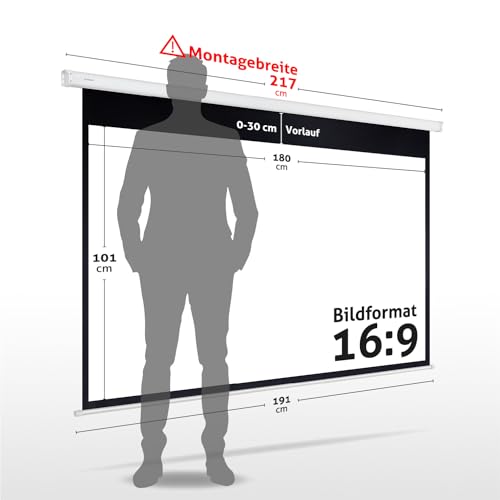 ESMART Economy EXM Motor-Leinwand 217 cm Bild 180 x 101 cm (81") | Format 16:9 | Fernbedienung | Heimkino elektrische Beamer Projektionsleinwand Motor Leinwand LCD