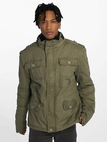 Brandit Jacket - Stylische Jacke für Herren mit versteckter Kapuze, Stehkragen und Baumwollfutter, Oliv,5XL Große Größen