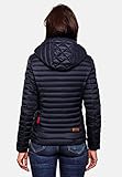 MARIKOO leichte Damen Übergangsjacke kurz mitteldick gefütterte Steppjacke mit Kapuze Samtpfote Blau Gr. XL