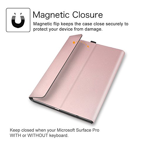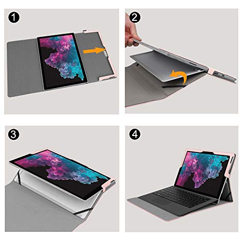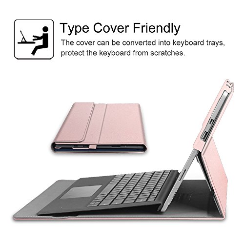 FINTIE Hülle für Microsoft Surface Pro 7+/ 7/6/ 5/4/ 3 Tablet 12.3 Zoll - Multi-Sichtwinkel Hochwertige Tasche Schutzhülle aus Kunstleder, Type Cover kompatibel, Roségold
