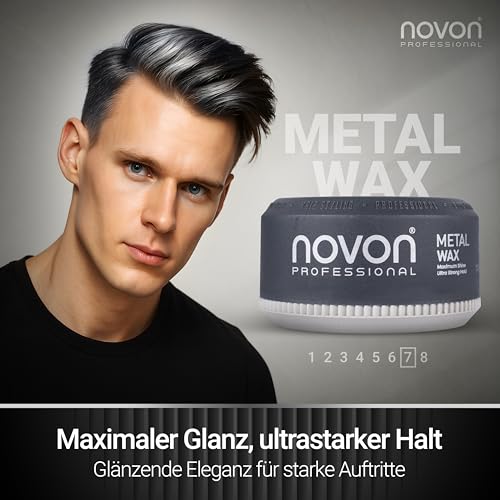 6 x Novon Professional Metal Wax | 150 ml Haarwachs | spiegelnder Glanz | kraftvoller Halt für definierte Styles|frischer Erdbeerduft | geeignet für besondere Anlässe | auch kinderfreundlich