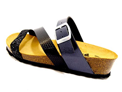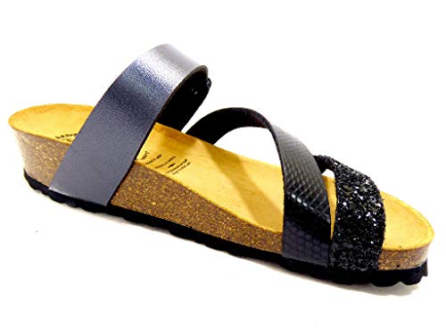 Lico NATURAL GLITTER Damen Pantoletten, Schwarz, 37 EU