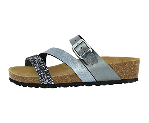 Lico NATURAL GLITTER Damen Pantoletten, Anthrazit, 42 EU