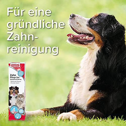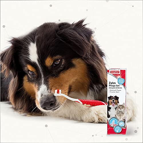 Beaphar 2 x Zahn-Pflege-Set: Zahnpasta + Zahnbürste für Hund und Katze