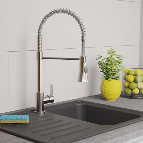 EISL LEON Niederdruck Spiralfeder-Küchenarmatur Edelstahl mit ausziehbarer Geschirrbrause, Wasserhahn Küche mit Federbrause, 360° schwenkbare Spültischarmatur, Einhebelmischer, NI183ESCRNI-LP-PR-A