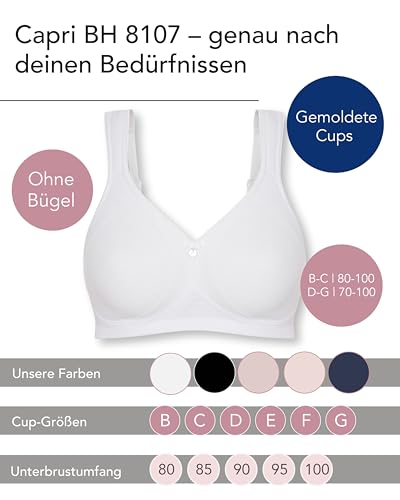 SUSA BH Damen ohne Bügel - Capri 8107 - Größen B-G - BH mit Soft-Touch-Unterbrustband - Gemoldete Cups mit Stützblenden & verstellbaren Träger - Glattes, leichtes Material - Bequemer T Shirt BH