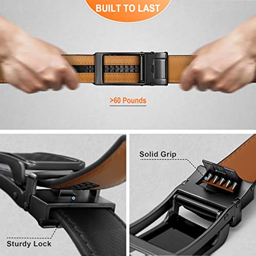 BULLIANT Gürtel Herren, Gürtel Ratsche Ledergürtel Automatikschließe für Herren Anzug Business Kleidung,Breit 35mm,Größe Angepasst(Schwarz,125cm/36-42" taille verstellbar)