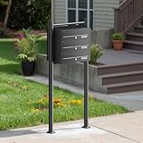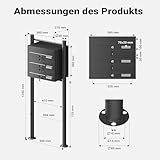 Wiltec 3er Briefkastenanlage schwarz 556 x 270 x 1500 mm, Standbriefkasten mit 3 Fächern, Schlüssel und Namensschild, Briefkasten Postkasten mit