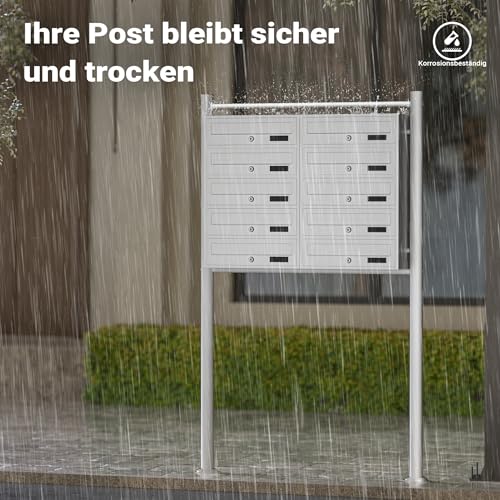Wiltec, Briefkasten Zubehör, 10er Briefkastenanlage weiss 2x5 Fächer Standbriefkasten Briefkasten Post
