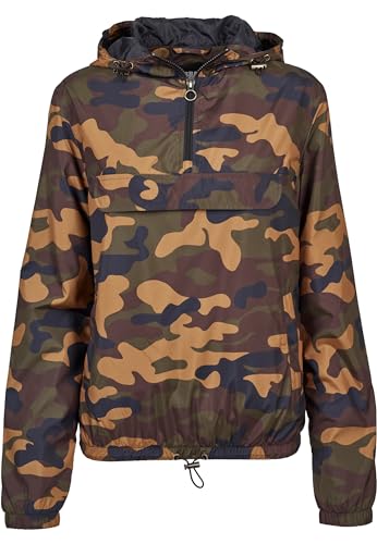 Outdoorjacke URBAN CLASSICS Urban Classics Damen Ladies Camo Pull Over Jacket, Damen, Gr. XS, woodcamo, 100% Polyester, mehrfarbig, normal, ohne Ausschnitt, Jacken Outdoorjacke