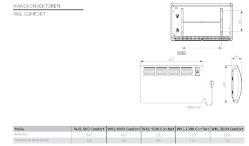 AEG Wandkonvektor WKL 500 Comfort – Effiziente Elektroheizung für 6 m²