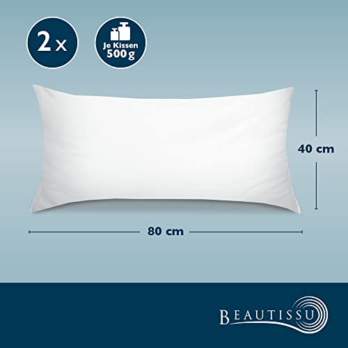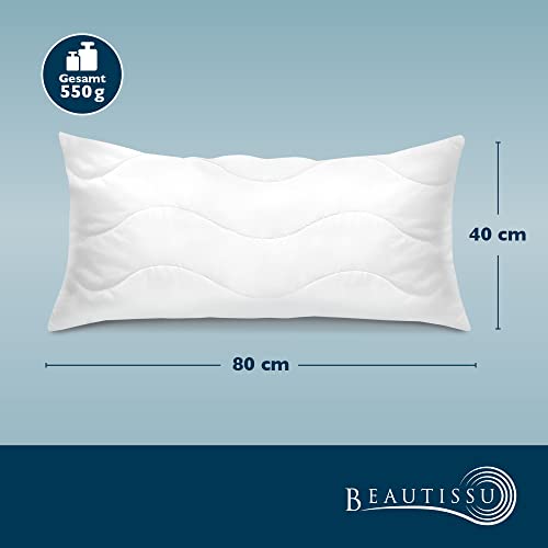 Beautissu Allergiker Kopfkissen 40x80 cm – Mikrofaser Steppkissen 800g Weiche Füllung – 60° Waschbares Schlafkissen Oeko-TEX – Pillow Kissen 40x80 – Sofa Deko Polster Kissen Bett BeauNuit NK