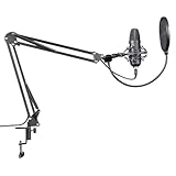 Trust Gaming 22400 GXT 252 Emita Plus Studio USB Mikrofon mit Arm und Popfilter, mit Nierencharakteristik für PC, PS4 und PS5, Streaming, Podcast, Voice-over - Schwarz