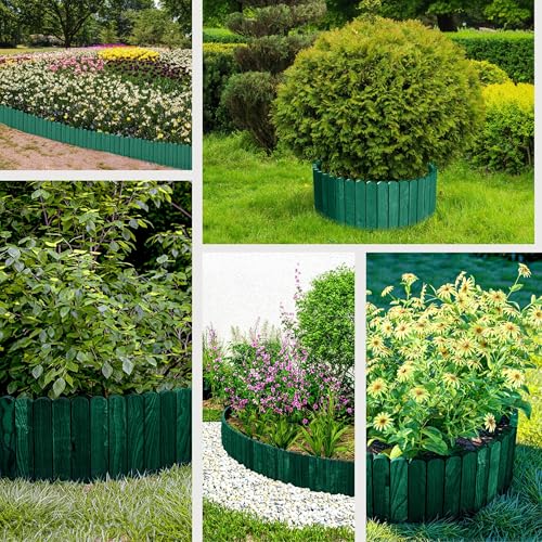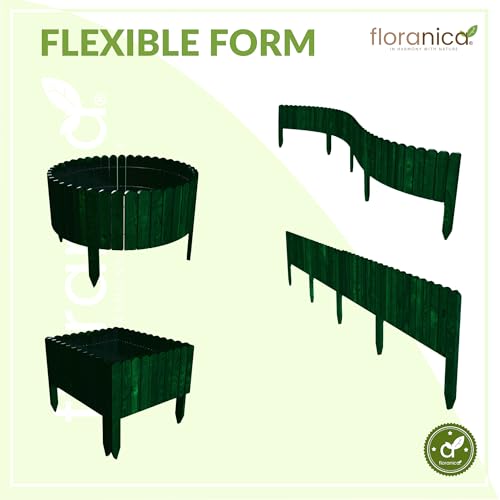 Floranica Rasenkante Höhe 30 cm Grün 200 cm Lang Gartenzaun Flexibler Holzzaun Gartendeko Gartenpalisade für Beeteinfassung, Mähkante Rollborder, Steckzaun Blumenbeet Umzäunung für Garten