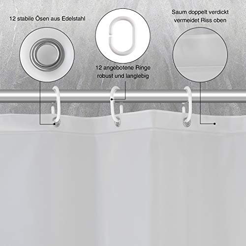 WELTRXE Duschvorhang mit Gewicht Magnet unten Semitransparent 183x183cm