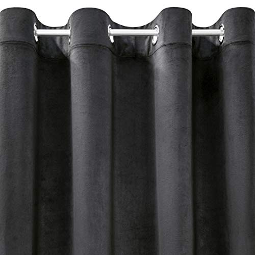 Eurofirany ROSA Vorhang Samt Velvet Ösen -1 STK. Weich Edel Gardine 200g/m² Elegant Glatt Einfarbig Flauschig Modern Klassisch Wohnzimmer Schlafzimmer, 140x250 cm, Schwarz