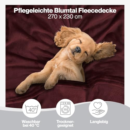 Blumtal Fleecedecke 270x230 cm - Oeko-TEX zertifizierte Kuscheldecke - Wohndecke 270x230 cm - weiche Decke Couch als Wohn- & Kuscheldecke - Flauschdecke - Wohndecke Kuscheldecke Dunkelrot