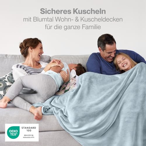 Blumtal Kuscheldecke flauschig - Oeko-TEX zertifizierte Fleecedecke 150x200 cm - Wohndecke 150x200 cm - Decke Couch als Wohn- & Kuscheldecke - Flauschdecke - Wohndecke Kuscheldecke Hellbau