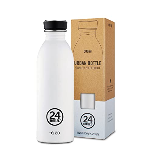 24Bottles Urban - Trinkflasche 500 ml, Wasserflasche 100% Versiegeltem Deckel, Umweltfreundliche Trinkflasche Edelstahl, Trinkflasche Sport Ultraleichte (Nicht-Thermische), Italian Design, Ice White
