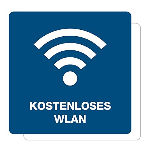 3 Stück Aufkleber "Kostenloses WLAN" mit Piktogramm – selbstklebende Hinweisschilder für Gratis WLAN – für Restaurants, Cafés, Bars, Einkaufsläden & Co geeignet (15 x 15 cm | Blau)