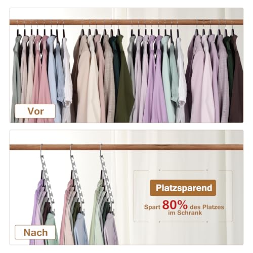 | weitere spezifikationen | Strapazierfähig, Jeder Kleiderbügel hat 6 Rillen. Sie können den Kleiderbügel horizontal verwenden, sodass er 12 Kleidungsstücke aufnehmen kann bis zu 30 Pfund belastbar , oder Sie können ihn vertikal verwenden, sodass 6 Kleidungsstücke Platz finden bis zu 40 Pfund belastbar . Es eignet sich für Mäntel und Anzüge. Schwere Kleidung wie Jeans und Kleider. Die Oberfläche des Kleiderbügels ist glatt und die Spitze des Hakens ist zu einer runden Kugel geformt, um ein Zerreißen der Kleidung zu verhindern., Rutschfest, Platzsparend |
