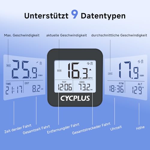 CYCPLUS GPS Fahrradcomputer Drahtlos Tacho Radcomputer IPX6 Kilometerzähler