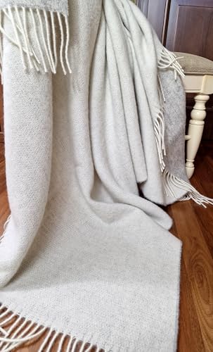 STTS International Wolldecke 100% Schurwolle Wohndecke in versch. Farben 140 x 200 cm Tagesdecke Schurwolldecke Woll-Plaid Tirol (Weiß-Hellgrau (Double face), 140 x 200 cm)