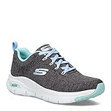 Skechers Damen Arch Fit Comfy Wave Sneaker, Charcoal Knit Blue Trim, 37 EU