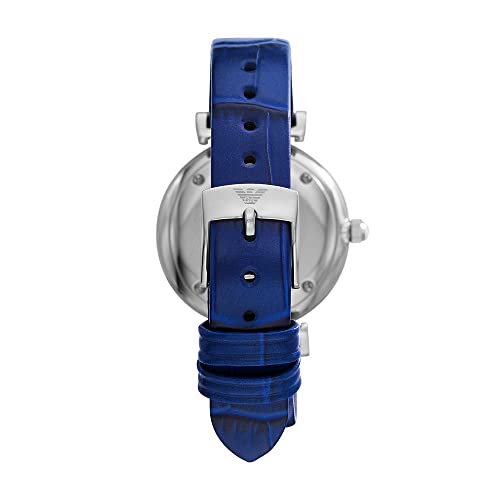 Emporio Armani Uhr für Damen , Zweizeiger Uhrwerk, 32mm Silbernes Edelstahlgehäuse mit einem Lederarmband, AR11344