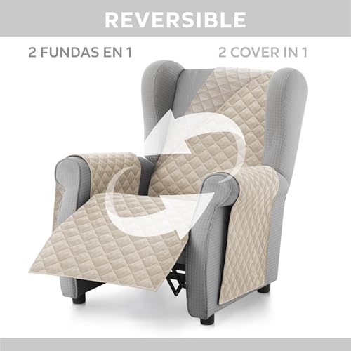 Textilhome Sofa Überzug MALU, Sofabezug 1-Sitzer (110 cm), Couch Überzug Gepolstert & Wende, Sofaschoner SofaÜberwurf Schutzdecke, Universell, Haustierfreundlich, Farbe Elfenbein