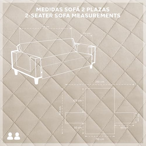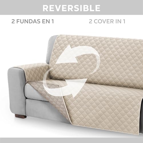 Textilhome Sofa Überzug MALU, Sofabezug 2-Sitzer (110 cm), Couch Überzug Gepolstert & Wende, Sofaschoner SofaÜberwurf Schutzdecke, Universell, Haustierfreundlich, Farbe Elfenbein