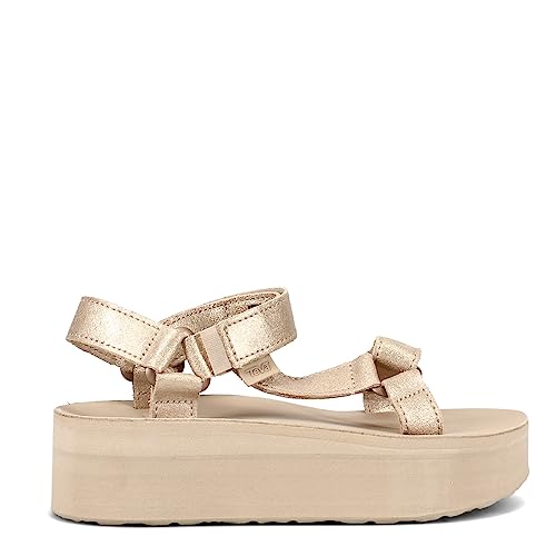 TEVA W Flatform UNIVERSAL Leather, Durchgängies Plateau Sandalen, Metallic Champagne,
