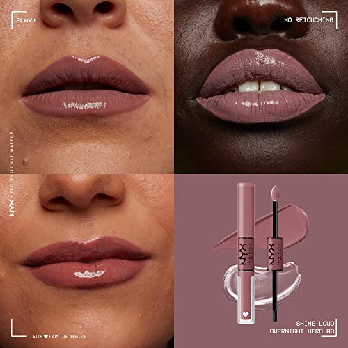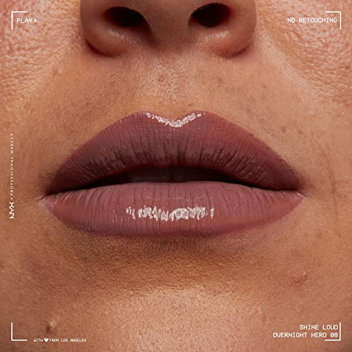 NYX Professional Makeup Lipgloss, Hochpigmentierte und langanhaltende Formel, Nicht abfärbend, Shine Loud, 08 Overnight Hero